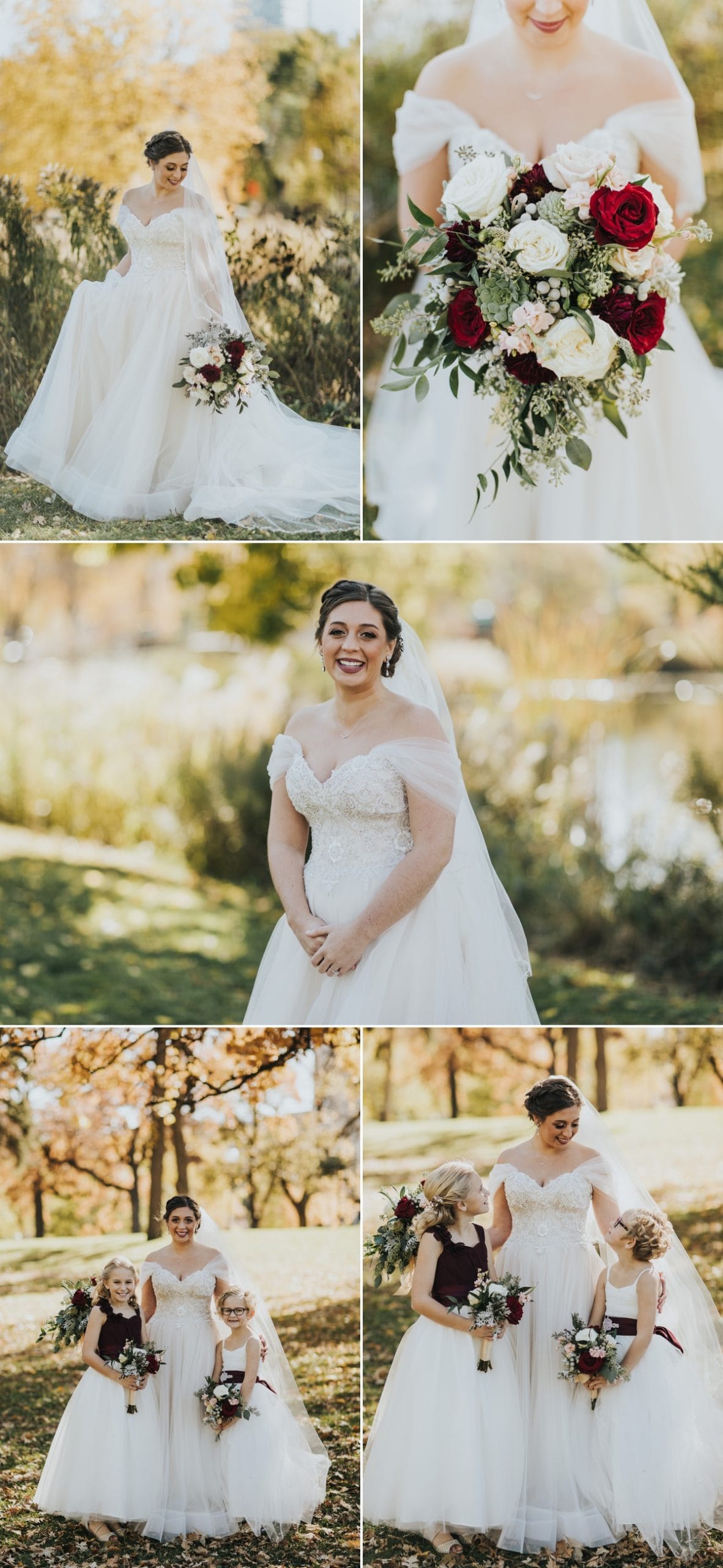 For Lexi and B.J.’s first look, we went back to Loring Park, aka the park of the strange squirrels, where we shot their engagement photos. We walked all around the park, and when we arrived at the Basilica afterwards, someone noticed that Lexi’s dress had gotten a little spot on the bottom. She looked down at it and laughed, “Oh yep, that’s goose poop. Goose poop on my dress – that’s good luck!”
